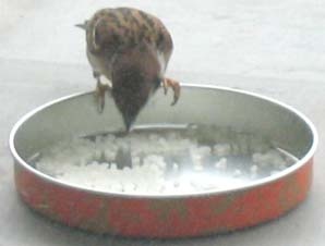 窓を閉めているとえさ箱へ近づいて米を食べて行きます。