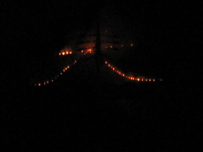 ボビンを操るあの手の動きは見てもどうなっているのか全く分かりませんでした。 じっと見ているとあっという間に時間が経ち感嘆するばかりでした。 上のNo.159の書き込みの真ん中の写真をもう少しアップで載せてみます。 あの女性は写真で数えてみると37本のボビンを操っていましたが、 数百ものボビンも操るそうなので複雑な模様も編めるのでしょうね。 ピンを刺している間を巧みに糸をからませていくのでしょうね。