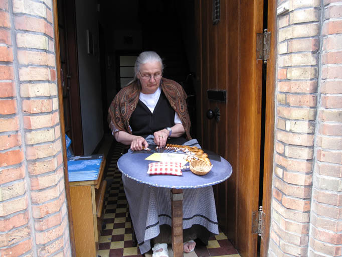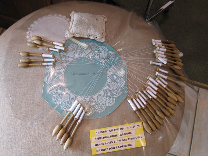 レースの編み方について、拡大写真はとても参考になりました。あの百本を越すだろう小さな針が重要な仕事をしているんですね。それにしても気の遠くなるような作業ですね。でも、だからこそ心を打たれるようなきれいなものが出来上がるのだろうと思いました。
