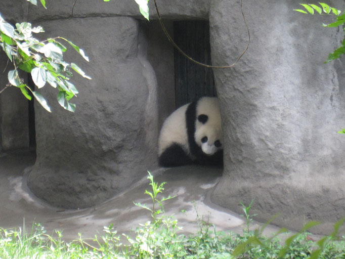 2005年に臥龍のパンダセンターへ行ったときに 保育器のパンダを撮りました。 (ここは地震で大被害を受けて閉鎖されましたね) これは少し育った赤ちゃんで、黒白模様がはっきりしています。 ガラスが曇っていてせいぜいここまでしか撮れませんでした(-_-;)