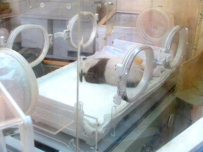 もっとちいさくて赤裸の赤ちゃんもいましたが ほんとに大人の親指ほどの大きさで 保育器の中でもパンダの毛皮に包まれて保温され、 小さなスポイトでミルクをもらっていました。