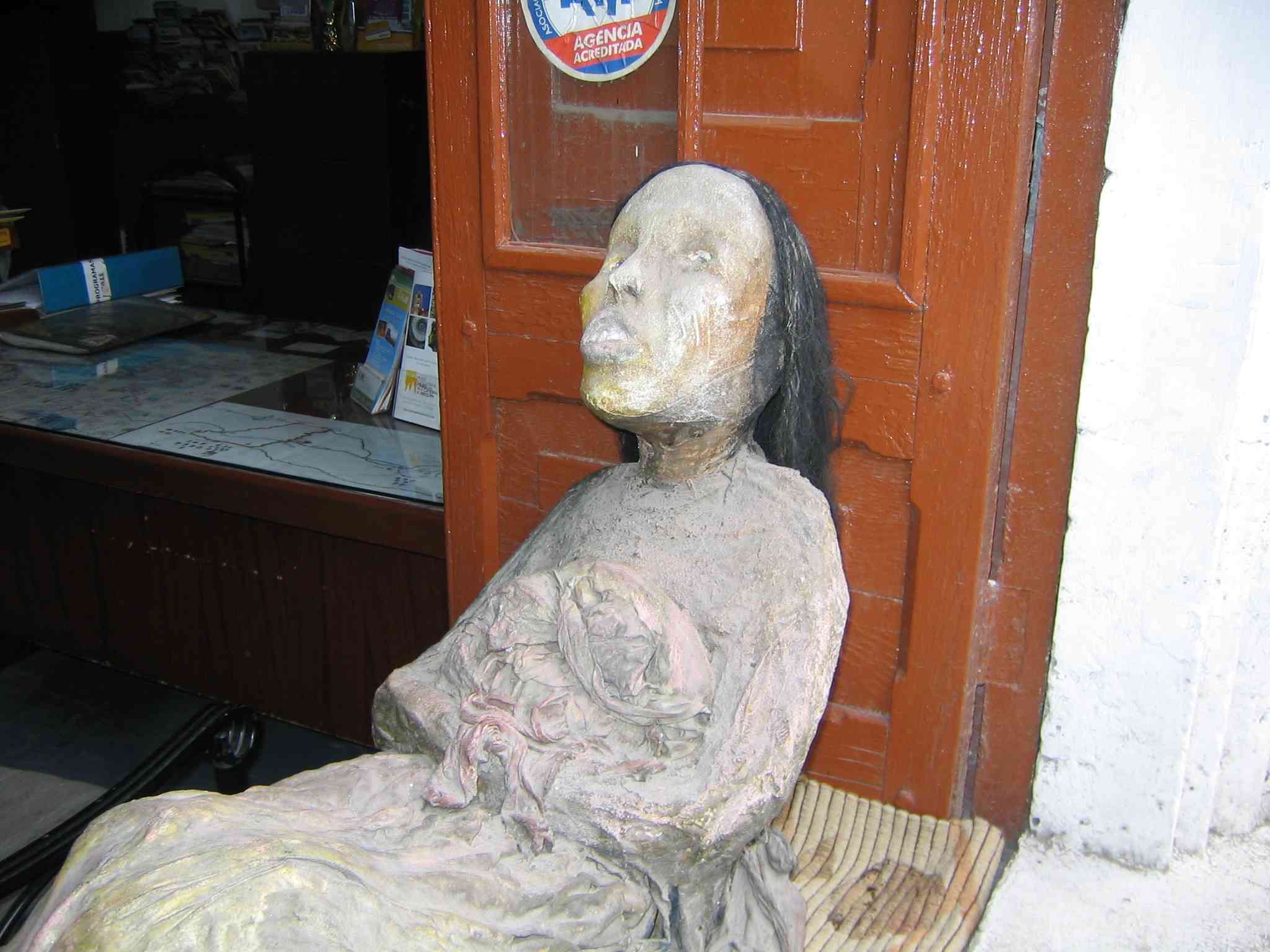 そうです。ところで アレキパから160KMの所にペルー第三の観光地コルカ峡谷があります。グランドキャニオンの二倍の深さがあります。翼長が4メートル近くもあるアンデス コンドルの生息地としても有名です。行ってみたかったのですが、途中バスが5000Mの山を越えなければなりません。高山病が心配で諦めました。アレキパ発の日帰り観光バスは朝3時に出て夕方6時に帰ってきます。日本やヨーロッパから行った場合どうせ時差ぼけがあるので という考えも成り立つかも。 |