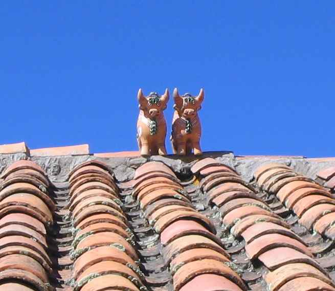 1枚目のお写真、屋根の上のおまじない、ふふ、いかにもそのような。 でも、私は屋根の瓦に目が行きました。 その繋ぎ目の土が何とも雑なような…。(^^;) スペインのマドリッドでも独特な丸っこい屋根の瓦に目が行って、 写真を撮っていた時に首絞め強盗に襲われました。汗。