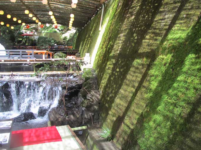 川床が作られている貴船川の山側のコンクリート面は苔むしてました。