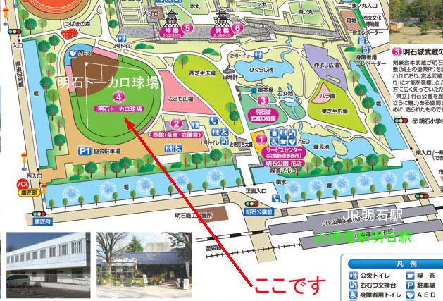 写真は、初戦の試合がある「明石トーカロ球場」周辺のイラストマップです。