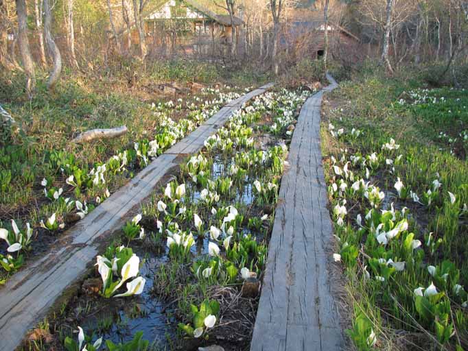 水芭蕉は、中には枯れかけていたりこれから開くというのもありましたが、