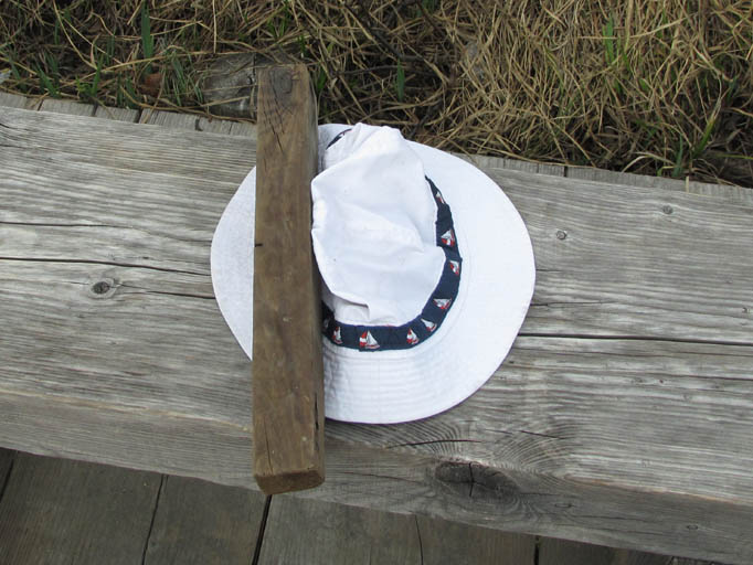 (4)帰り道で、誰かが忘れたのか木道脇のベンチに帽子が置かれていました。