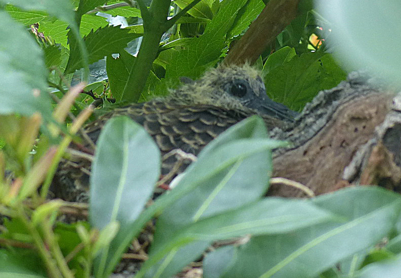 ふふ、「巣立ったヒナが近くの電線に来ていたそうよ」と夫に話したら、 夫は「そうかなぁ?」と笑いながらの反応…。いえ!私は信じますよ、 そのハトはきっと巣立ったヒナで、生まれた所へ遊びに来たんですよ!
