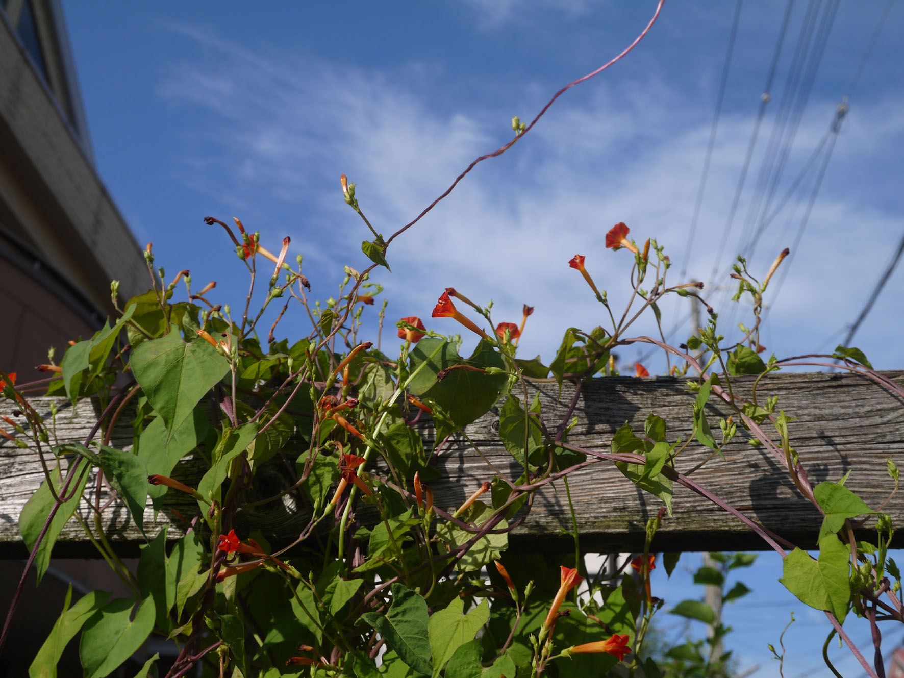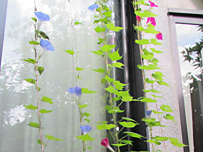 ど根性アサガオ、色んな色が有ってきれいに咲いていますね。