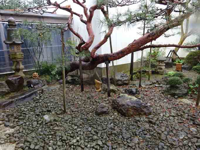 写真でも分るでしょうか、庭のあちこちに妖怪が潜んでいます。