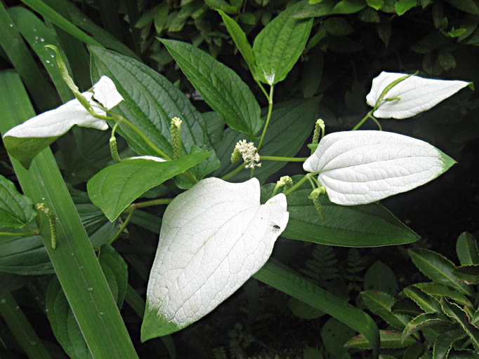 実は、バスの窓から白い葉を見つけて、あ、あれはマタタビだと言いたいのに 名前が出てこないで(最近はいつもこれ…情けない)、あれあれと言っていたら、 運転手さんが聞いてられないと(^^;)「マタタビ」だと教えて下さり、 そうそう、マタタビだと思い出したのです。