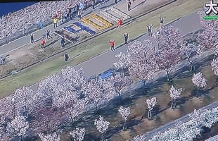 こちらの狭山池の桜が、3月29日NHKの「おはよう関西」で紹介されました。芝生に花で「1400」と描いているのがおわかりでしょうか?