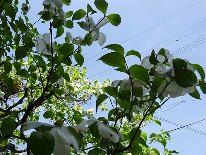 我が家で今咲いているのは、ハナミズキだけです(下から撮ってみた)。