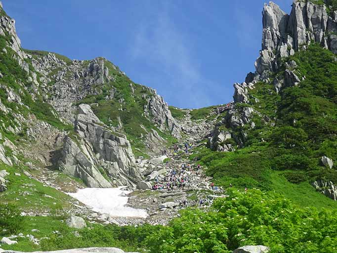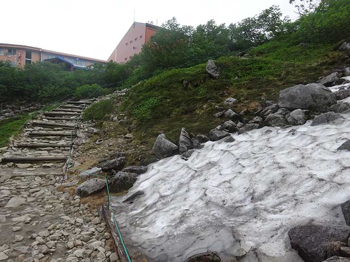 木曾駒ヶ岳ではあちこちで雪(雪渓)が残っていました。