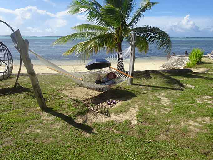 私は何と帽子を被って日傘を差してハンモックで寝ています。