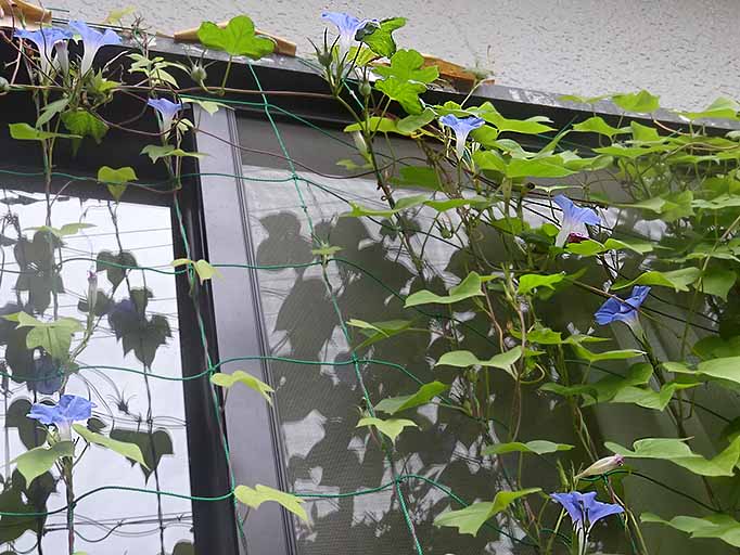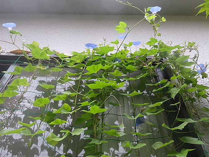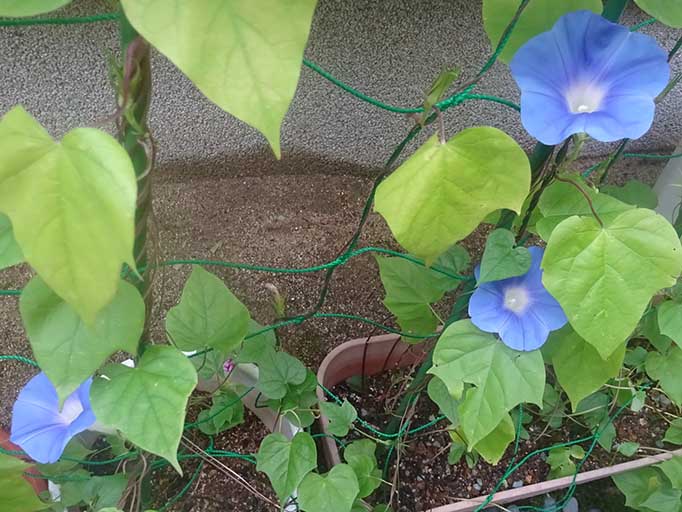 ど根性アサガオはその後も咲いていて、今日は20個も咲きました。