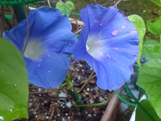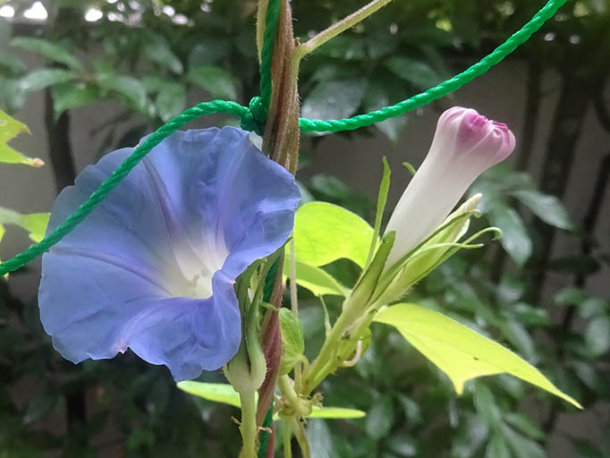 でも、その強風にも倒れなかったのが我が家のアサガオです。