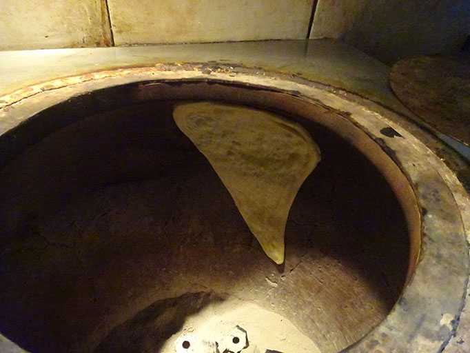 タンドールという窯は壺のような形で、底では炭を燃やしていた。