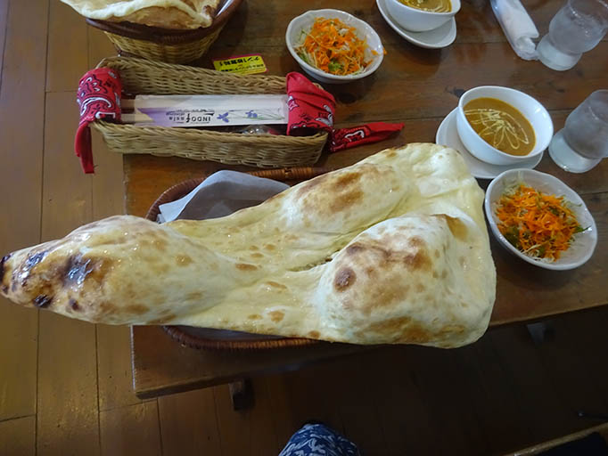 でっかいナンは、ちぎってカレーに浸して食べます。