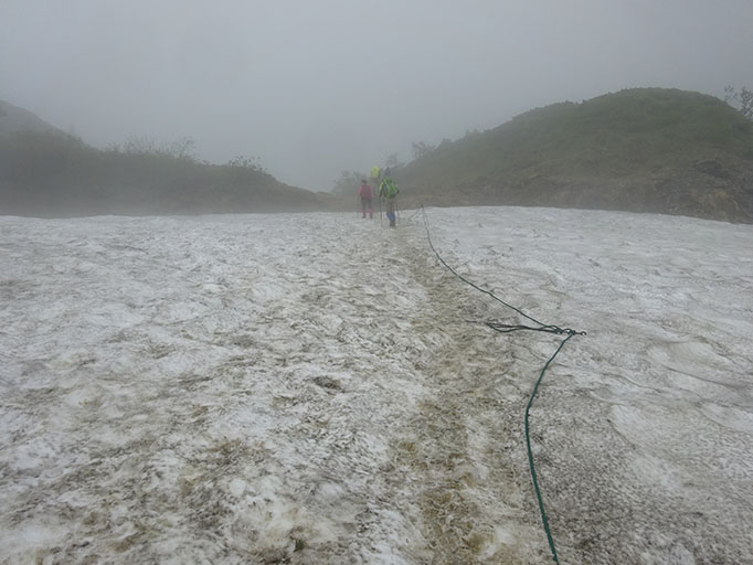 垂れ下がった雲と深い霧で、雪山は何処へ・・でした。トホホ。