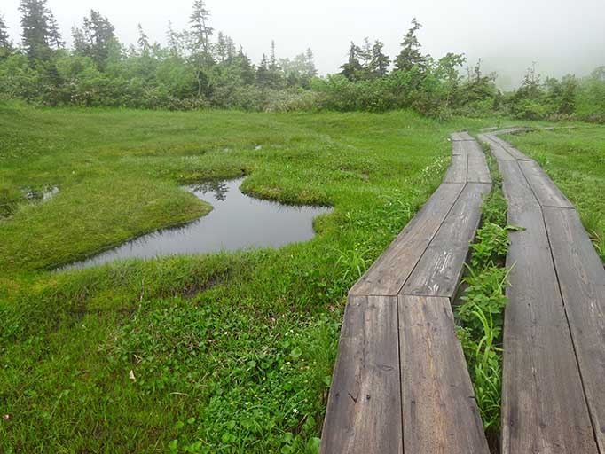 写真3枚目は、ゆるく曲がった木道ではありません。(^^;)