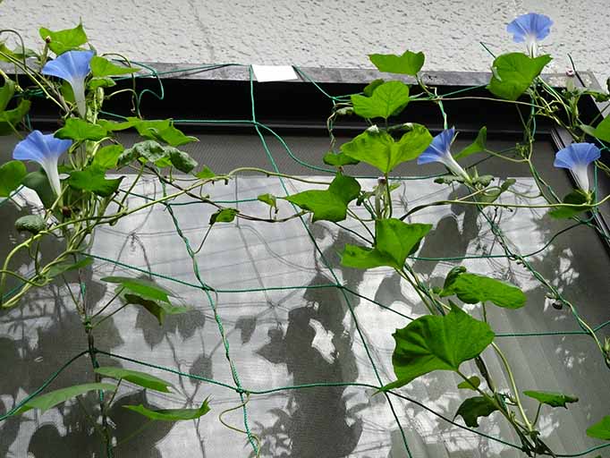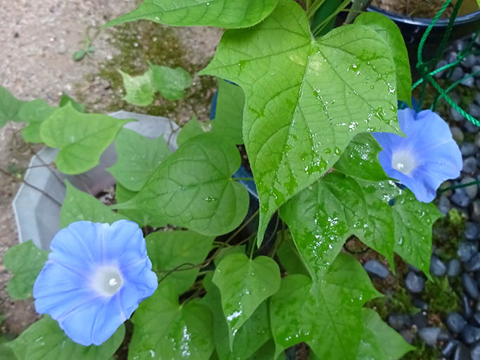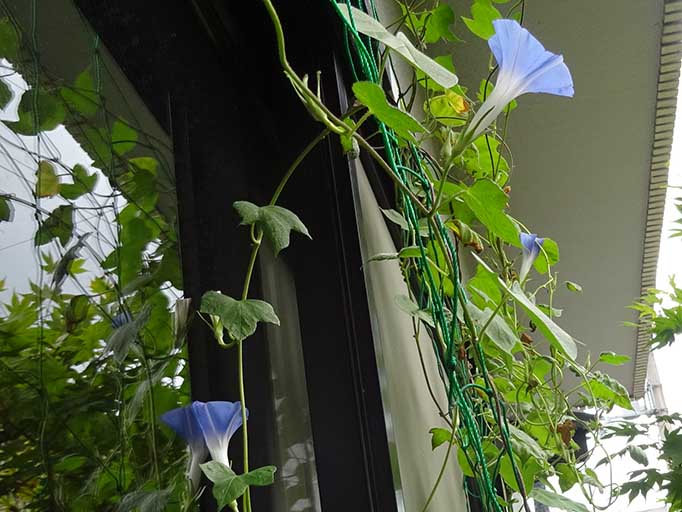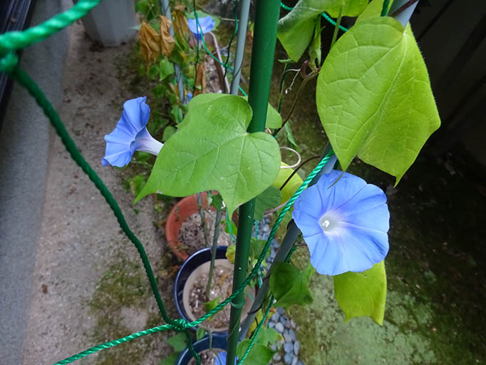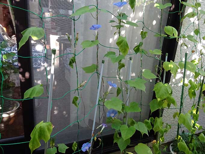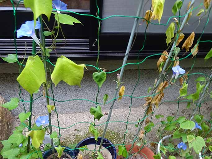 今年のアサガオは、葉もあまり茂らず、花も小さいのです。