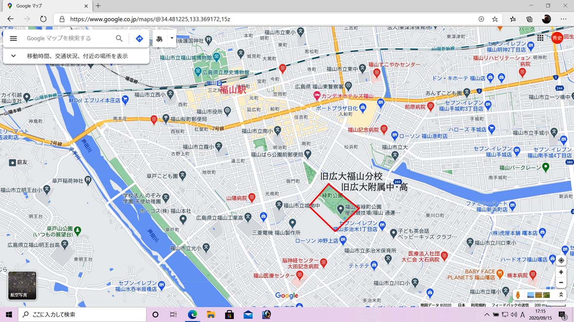 右3分の1部分の校舎があった部分は広〜い公園になっているようです。