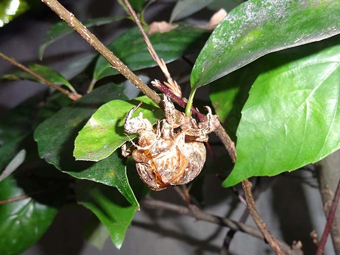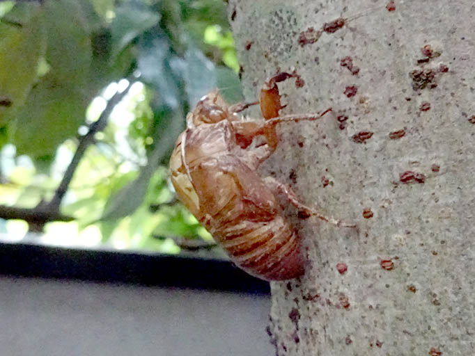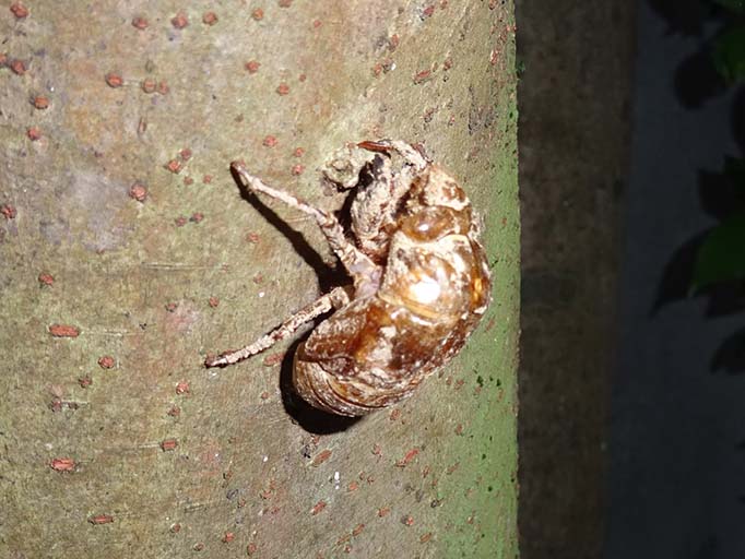 庭の木にセミの抜け殻があるのをそのままにしています。