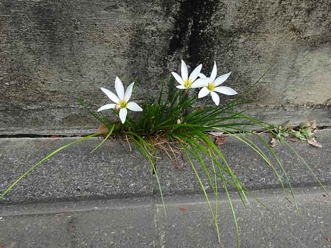 種が落ちて咲いたのでしょうか(球根?)、石垣の下でも咲いています。