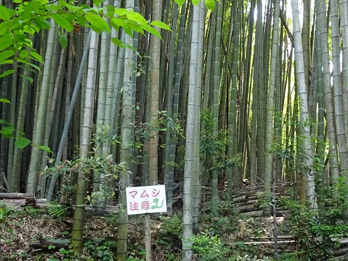 ・「マムシ注意」  竹林のあちこちで見かけましたが、もしかして、タケノコを盗まれないように  このような注意書きを掲げているのでしょうか???