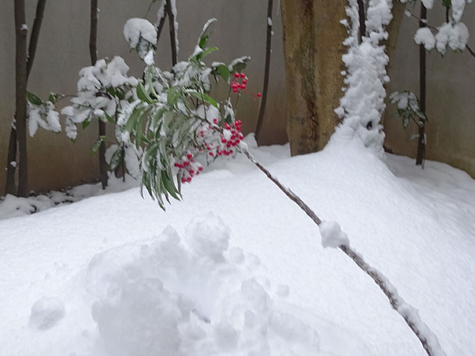 夕べから激しく降っていた雪は今朝には又積もっていました。