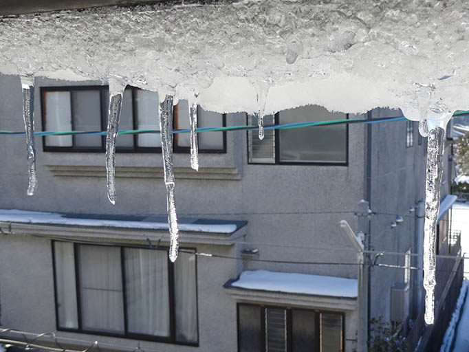 1枚目は、2階のベランダの屋根からぶら下がっているつらら。
