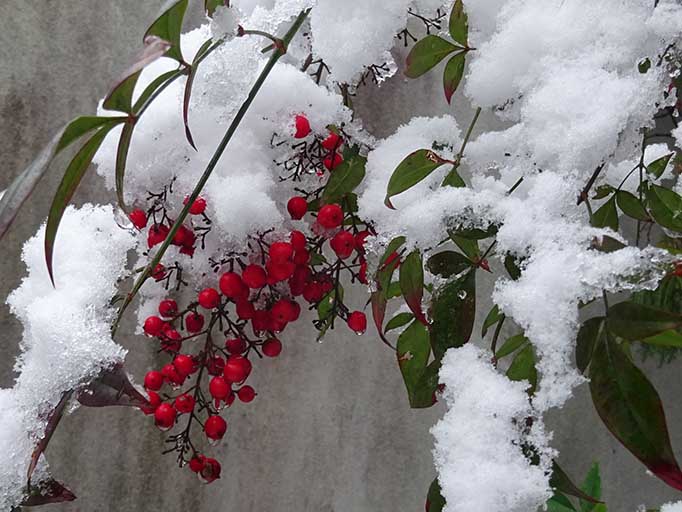 でも、そんなに大雪ということはなく、降り積もった雪は花のようです。