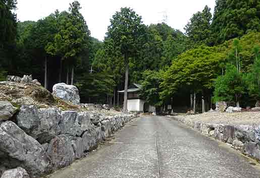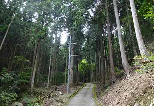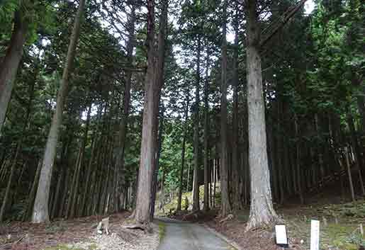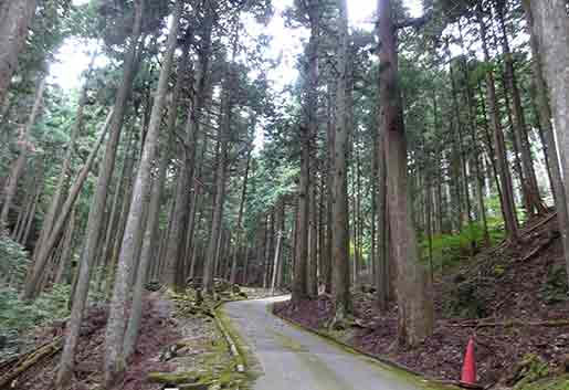 緩やかな坂道の両脇は、楓と杉の木に囲まれ、