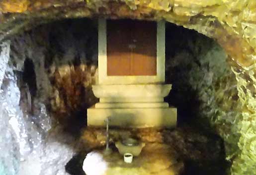 岩屋中央に置かれている石廟は、信者によって収められたものだとか。