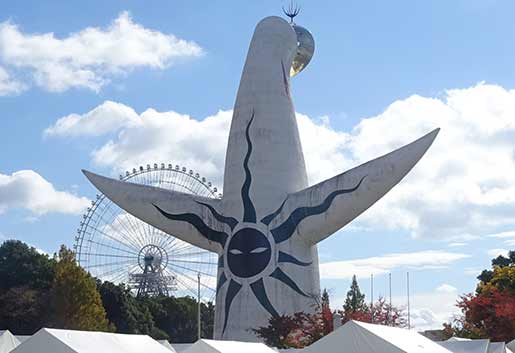 モノレールを降りた駅から歩き始めて、あの「太陽の塔」が見えてきた。